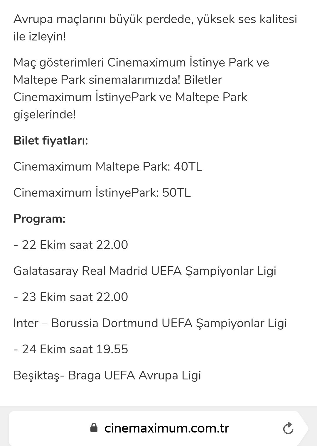Maltepe Park Cinemaximum Bilet Fiyatları.